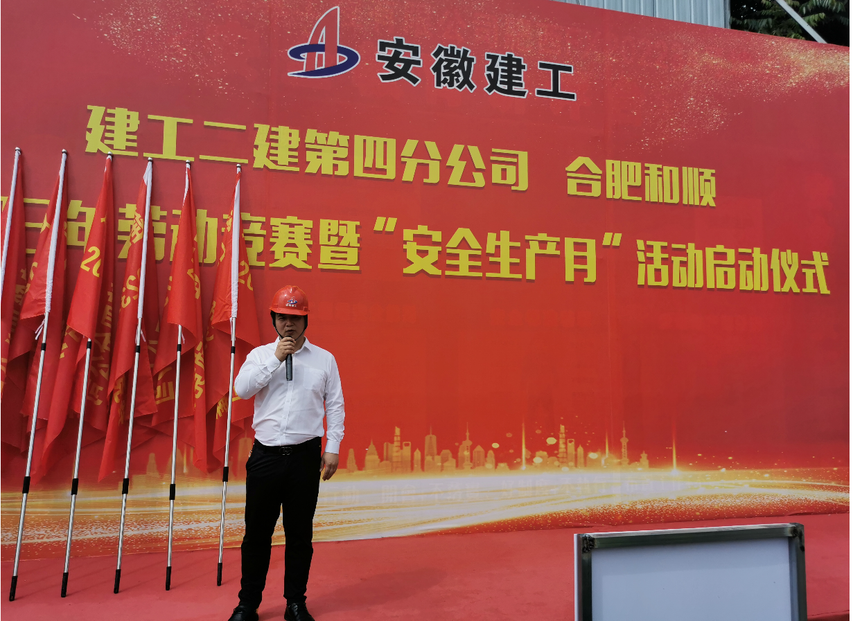 本次劳动竞赛旨在充分调动广大建设者的积极性,引导广大职工充分发挥劳模精神、劳动精神、工匠精神,安全、优质、高效地圆满完成施工任务。活动现场,第四分公司生产副经理周文建作动员讲话,合肥和顺总经理沈印、越秀地产项目总经理董大泽分别发言,第四分公司质量副经理刘韧宣读2023年劳动竞赛实施方案,参赛项目代表付奎表态发言,参加活动的领导为各参赛项目授旗。