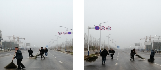 3月19日,二分公司琨宇悦湖城项目部与城管部门联系主动承担清扫陈集路和庐阳大道路面卫生,项目管理人员在项目经理姚鹏的带领下,拿起扫把垃圾桶,清理下雨后路面留下的落叶及垃圾,大家干劲十足,落叶及垃圾很快得到清理,得到了城管部门的认可。