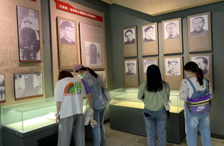 大家来到陈列馆,馆内陈列着有代表性的从第一、第二次国内革命战争时期至社会主义建设时期烈士的光辉业绩。接着,到纪念碑前,全体团员青年庄严宣誓,重温入团誓词。