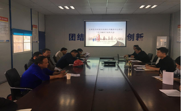 为促进项目生产,全面实现公司年度生产目标,围绕二建公司【2017】130号文精神,结合与公司签订的“大干六十天”劳动竞赛目标责任状。11月9日下午,太和发艺公共服务中心项目部召开了关于“大干六十天”动员大会。各管理人员及各班组负责人参加了会议。会上项目经理和各班组负责人签订了责任状。