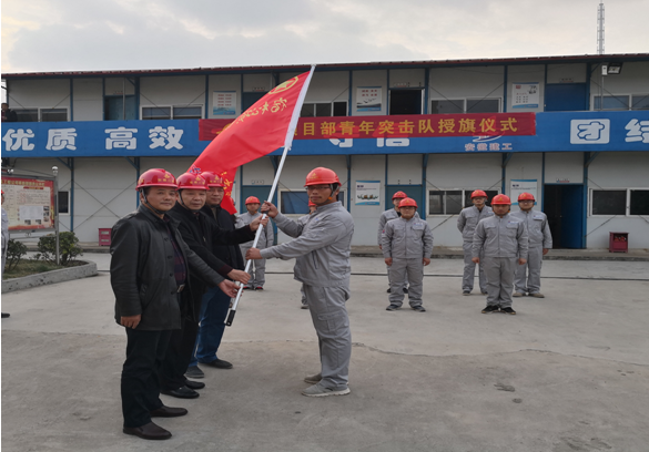 11月20日,宿松项目部结合公司“大干60天”劳动竞赛活动热潮,在公司工会、团委的支持下组建了安徽二建首支“青年突击队”,公司工会主席李林、副主席蒯家江、分公司支部书记陈习武应邀参加了“青年突击队”授旗仪式并进行授旗。