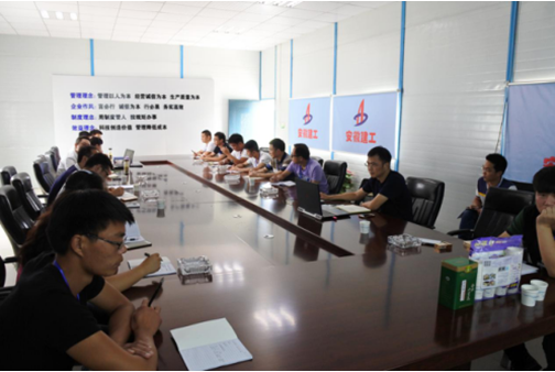 叶和永一行参观了安建·枫林源筑Ⅱ标段项目部办公区、生活区,检查了施工现场,详细询问了项目生产情况和职工生活、学习等情况。项目负责人潘泽强对工程概况、项目组织体系、前期工作和下一步工作计划进行了汇报。公司相关部门结合项目实际分别就“三位一体项目管控体系”、“七化”管理、公司相关规章制度、工作流程、工作要求等内容对项目部全体管理人员进行了系统交底;与会人员还就项目策划工作进行交流讨论,对项目主要管理目标、现场平面设计、资源配置方案、项目组织机构等内容进行充分讨论并提出意见建议。