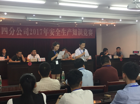 为进一步响应“安全生产月”活动的开展,深入贯彻落实企业安全生产主体责任,第四分公司组织开展了2017年安全知识竞赛,并诚邀公司安全管理部副主任张晖担任本次比赛的裁判。本次活动分公司领导高度重视,准备充分,组织严密,旨在提高全员安全意识,以更严、更细、更实的态度扎扎实实地抓好各项安全生产工作。