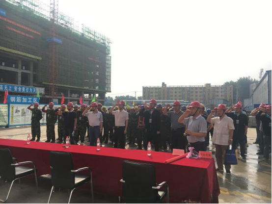 2017年6月8日上午,由安徽二建承建的太和发艺时尚文化园公共服务中心项目开展2017年“安全生产月”启动仪式暨安全生产应急救援、消防演练活动,正式拉开了以“全面落实企业安全生产主体责任”为主题的安全生产月活动序幕。公司副总经理叶和永,安全管理部、工程管理部、保卫部、太和PPP项目负责人、班组长、一线作业施工人员等百余人参加了此次活动。
