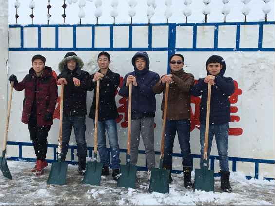 寒风阵阵,雪花飘飘,厚厚的积雪让人步履艰难,但这并没有阻挡队伍的铲雪进度,每一锹、每一铲,都凝结大家的付出和努力。经过奋战,道路,院内积雪都被清扫干净,确保了道路畅通和人员安全,极大的方便了项目全体人员的出行,项目建设进度得以正常推进。