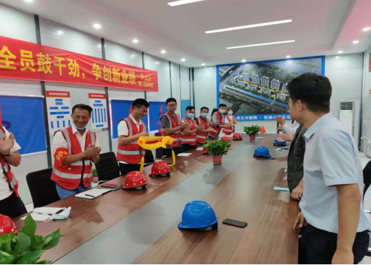 9月26日上午,安徽二建第一分公司承建的融翔·悦澜山项目圆满完成“6.20”“9.20”双节点预售抢工任务,获得建设单位表彰。悦澜山项目因工期紧、任务重,自开工以来便吹响了抢工的号角。项目部通过在施工现场悬挂宣传标语、定期召开进度协调分析会等方式,全体员工上下一心、团结协作,保质保量的完成了 “6.20”“9.20”双节点任务,赢得了建设单位的认可与好评,取得了阶段性的胜利。