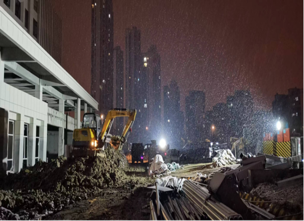 寒冷,挡不住工作的热情。病毒,压不垮坚强的意志。在这疫情防控形势依然严峻复杂的12月里,肥东县人民医院公共卫生综合楼项目的工地上一派热火朝天的繁忙景象,在做好疫情防控工作的前提下,抢工期、保任务,确保了疫情防控和建设施工“两手抓、两不误”。土建、安装、装饰、道排等十几个分包班组在总包统一指挥下,协同作战,夜以继日的按进度计划全力推进工程进展。
